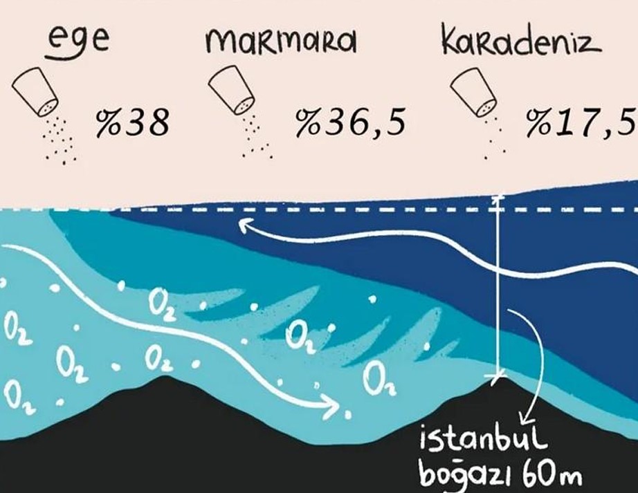 İstanbul Boğazı’nın iki tabakalı bir akım yapısı vardır. Yoğunluğu yüksek olan Marmara Denizi suyu alt akıntı ile Karadeniz’e taşınırken, yoğunluğu düşük olan Karadeniz suyu üst akıntı ile Marmara Denizi’ne taşınmaktadır. Mevcut olan bu yoğunluk farkının nedeni Karadeniz ve Marmara Denizi arasındaki tuzluluk oranıdır. Karadeniz ~18 psu (düşük) ve Marmara Denizi ise ~37 psu (yüksek) tuzluluğa sahiptir. İşte bu yoğunluk farkı boğazdaki çift taraflı akıntıyı oluşturmaktadır. Ayrıca Karadeniz’in su seviyesi Marmara Denizi’ne göre daha yüksektir. Bu su seviyesi farkı ise boğazdaki üst tabaka akımını kontrol etmektedir. Su seviyesi farkı meteorolojik etkilere ve Karadeniz’in hidrolojik değişimlerine bağlı olarak zaman içerisinde değişiklik göstermektedir. Böyle değişiklikler Boğaz’daki alt ve üst tabaka akımının kalınlığını, ara kesit düzleminin yerini ve akıntının şiddetini etkilemekte zaman zaman iki tabakalı yapının ortadan kalkmasına dahi neden olabilmektedir.