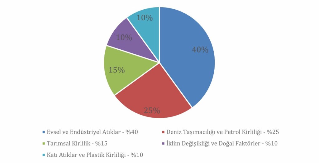 Marmara Denizi’nde kirlilik faktörlerinin oranı tam olarak belirlenmiş değildir ancak uluslararası sular üzerinden bir araştırma yapıldığında bu oran tahmin edilebilir. Uluslararası düzeyde denizcilik sektörünün üst kuruluşu olan IMO’nun (Uluslararası Denizcilik Örgütü) verilerine göre denizlerde meydana gelen kirliliğin nedeni olan atıkların %8’i doğal kaynaklardan, %0.5’i açık deniz üretiminden, %11’i deniz taşımacılığından, %30’u atmosferden, %40’ı taşkın ve kara kökenli deşarjlardan, %10’u kaçak deşarjlardan (gemilerden ve uçaklardan, karada ve denizde üretilen atıklar) denizlere girmektedir. Marmara Denizi için basit bir analiz yapılırsa, Marmara Denizi’ndeki kirliliğin en büyük sebebi, evsel ve endüstriyel atıkların %40 oranındaki etkisidir. Şehirleşme ve sanayileşmenin yoğun olduğu bölgelerdeki yetersiz atık yönetimi, denizi en çok kirleten faktördür. Bunu, %25 oranında etkisi olan deniz taşımacılığı ve petrol kirliliği izlemektedir; yoğun gemi trafiği ve gemi atıkları ekosisteme ciddi zarar vermektedir. Tarımsal faaliyetlerden kaynaklanan nitrat ve fosfat kirliliği ise %15 ile üçüncü sırada yer almakta ve ötrofikasyonu tetiklemektedir. İklim değişikliği ve doğal faktörlerin %10 oranındaki etkisi, deniz suyunun ısınması gibi süreçlerle ekosistemi etkilemektedir. Son olarak, katı atıklar ve plastik kirliliği %10 oranında bir yük oluşturarak denizin temizliğini tehdit etmektedir.