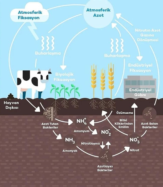 Yeraltı suyunda belirlenen önemli kirleticilerden biri olan azot çoğunlukla nitrat (NO3–) şeklinde bulunmakla birlikte, amonyum (NH4+), nitrit (NO2–), azot oksit (N2O) ve organik azot şeklinde de bulunabilmektedir. Hatalı sulama ve gübreleme sonucu yeraltı suyuna ulaşan nitratın yanı sıra evsel ve endüstriyel atık sularından veya hayvansal atıklardan kaynaklanan nitrat da doğrudan veya topraktan sızan sularla taşınarak yeraltı suyuna ulaşmaktadır. Bitkilerin azot ihtiyacını karşılamak amacıyla amonyak içerikli gübreler uzun süredir çiftçiler tarafından kullanılmaktadır, ancak bu da çevre sorunlarını beraberinde getirebilmektedir. Gübre olarak verilen amonyağın bir kısmı bitkilerce kullanılırken, bir kısmı da topraktaki bakteriler tarafından hücresel solunumda kullanılır ve bunun sonucunda nitrit açığa çıkar.